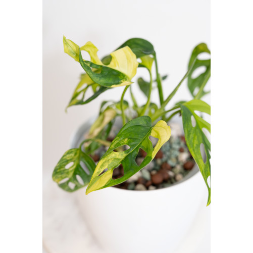 Monstera dubia to niezwykle pnącze, które dramatycznie zmienia formę z młodocianej na dorosłą. Młode liście z charakterystycznych srebrnym nakrapianym wybarwieniem zmieniają się z obłędne, całkiem zielone, wielkie liście z głęboką fenestracją. Dubia najlepiej rośnie gdy może wspinać się po płaskiej powierzchni (deska jest idealna), ewentualnie po paliku kokosowym lub sphagnum. Potrzebuje jasnego miejsca i nie lubi przelewania jak inne monstery.