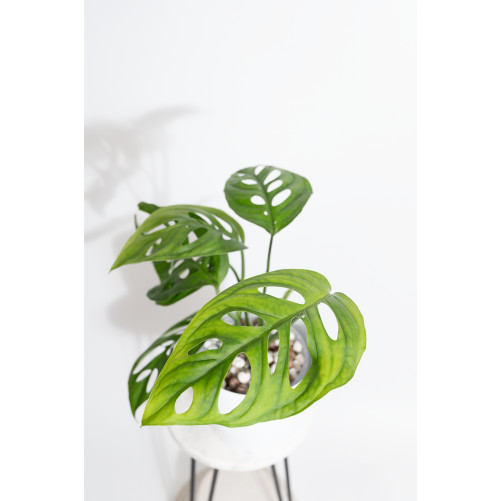 Monstera obliqua Peru jest jedną z najdrobniejszych monster, a na pewno najbardziej delikatną i podziurawioną. Charakteryzuje się bardzo gęstymi i stosunkowo dużymi, owalnymi fenestracjami w lancetowatej blaszce. Lubi wysoką wilgotność i podpory. Ciekawostka: w naturze charakteryzuje się skototropizmem (odwrotność fototropizmu) tworząc bezlistne 'runnery' płożące po ziemi, ukorzeniające się i rozmnażające w ten sposób. Tak też można rozmnażać obliquę. Wystarczy pociąć runner na kawałki i wrzucić do pudełka ze sphagnum ;)